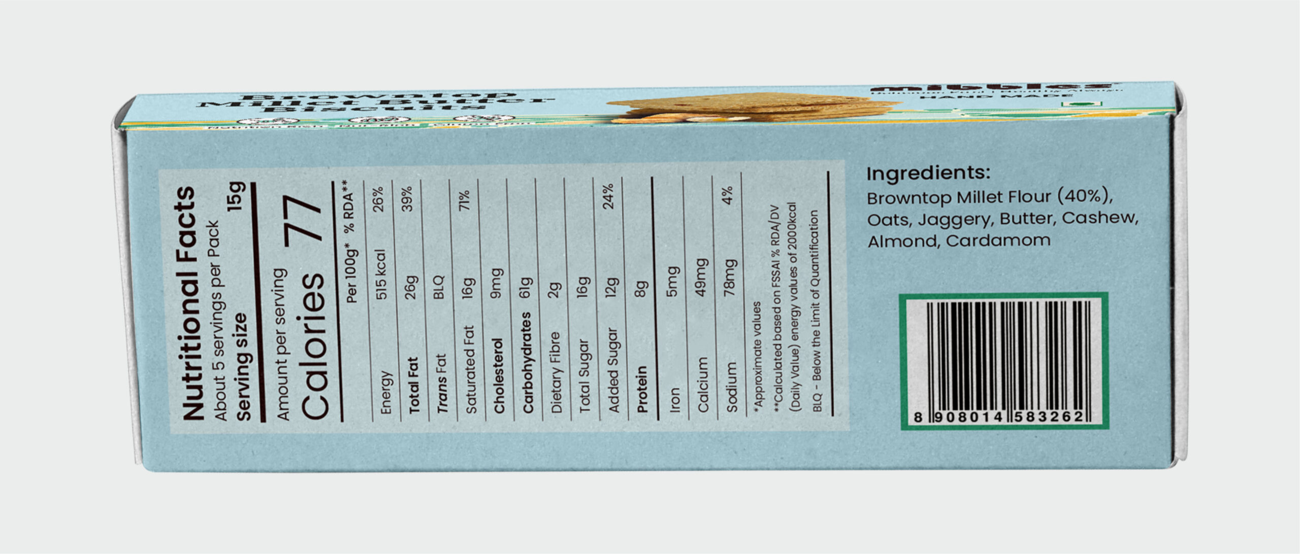 Better Blood Sugar Control: Millets have a low glycemic index, meaning they release energy slowly and help in managing blood sugar levels. This makes millet biscuits a good snack option for people with diabetes.